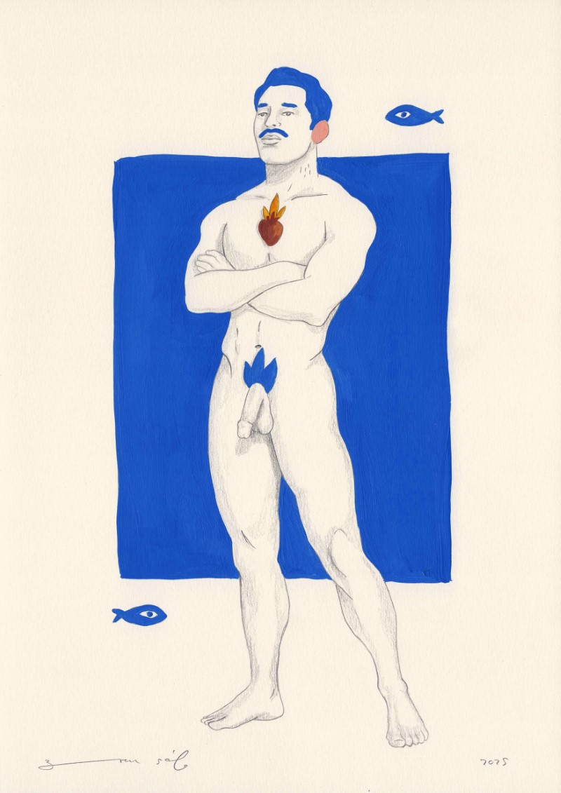 The opening was very well received, with 29 of the 60 works on display sold. The exhibition includes oil paintings, paintings on paper, drawings, Polaroids, cyanotypes and prints, all by Bran Sólo. This variety of techniques allows visitors to explore different aspects of the artist’s work, while maintaining a thematic and visual coherence that makes the exhibition a solid and well-defined whole.